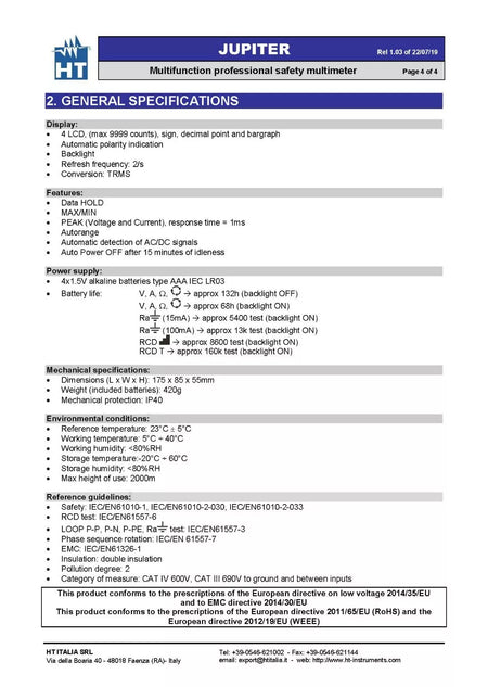 - We have 3 units of HT Instruments JUPITER Multifunction Multimeter 690V / AC+DC LoZ Input. Pictures shown are for reference; we ship randomly. Please contact us for real product images.